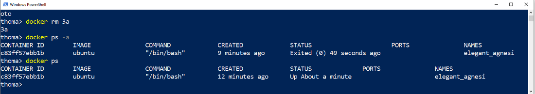 docker rm CONTAINER_IDCheck if the container is gone:
