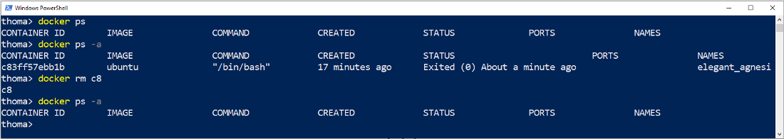 docker ps -aRemove the container to clean up: