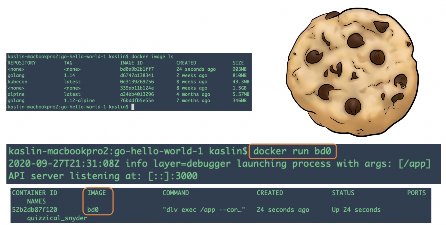 🍪 Thinking back to the cookies, when a machine wants to create 5 cookies (containers), it gets (downloads) the parts listed on the recipe (image) and uses it to cookie cutter five identical cookies (containers) it can then run. When the cookies are listed we can add toppings and other things to an individual cookie (edit the running container with bash commandline), of course without affecting the other cookies (containers) or the cookie cutter (image).